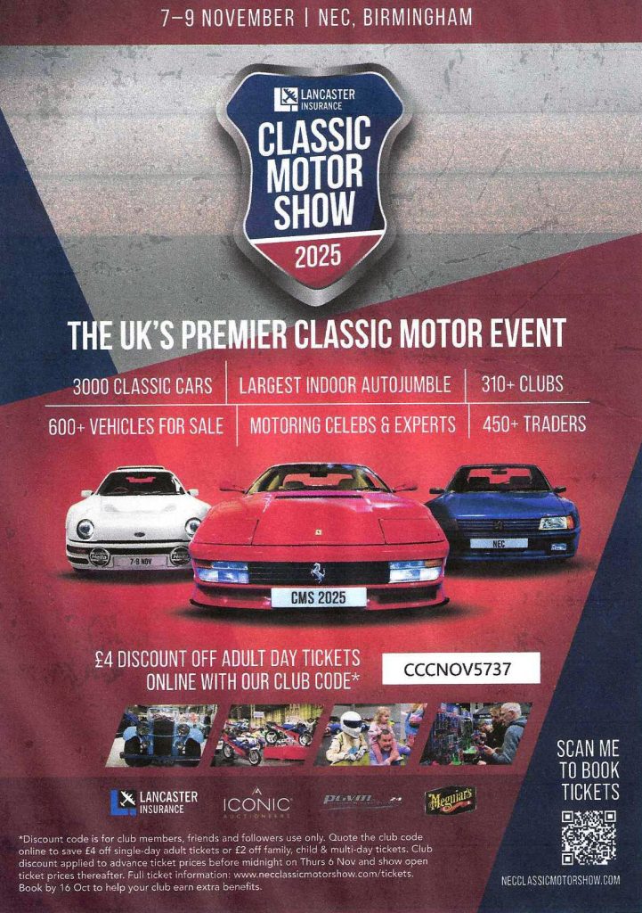 November 7 to 9 The Classic Motor Show at NEC Birmingham.